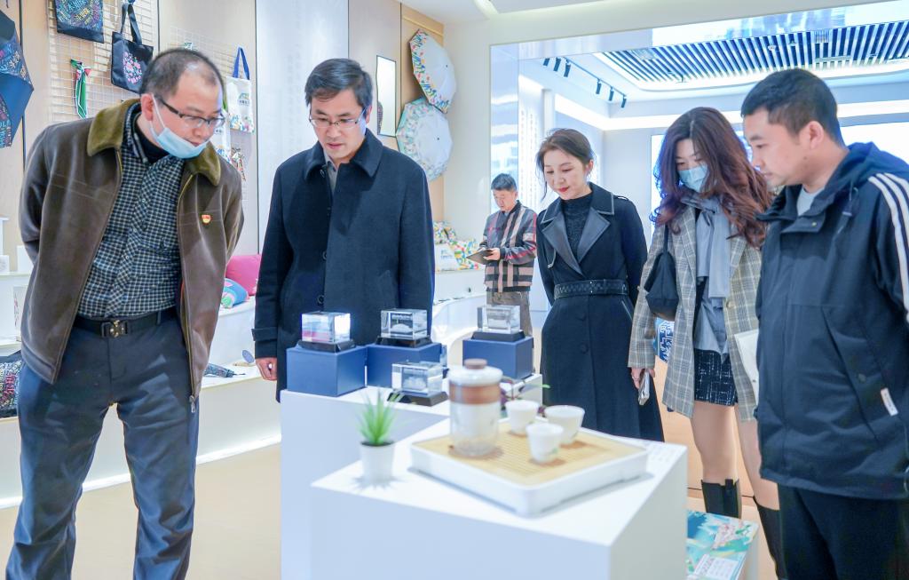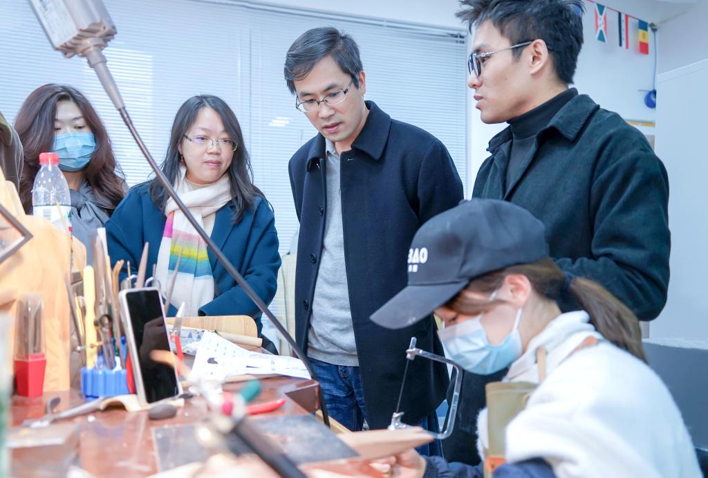 会前,史在宏一行参观了我校校史馆和文博学院实训基地,对我校学生宝玉石制作成品表示赞赏。