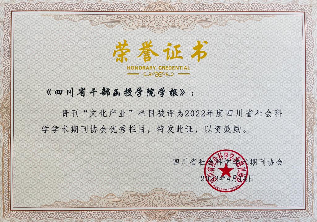4月14日,四川省社会科学学术期刊协会、四川省高校文科学报研究会召开学术年会,会上公布了2022年度四川省社会科学学术期刊协会优秀主编、优秀编辑、优秀编辑学论著、优秀栏目等获奖名单。《四川省干部函授学院学报》编辑部报送参评的“文化产业”栏目被评为2022年度四川省社会科学学术期刊协会“优秀栏目”,编辑部张旻昉被评为2022年度四川省社会科学学术期刊协会“优秀编辑”。