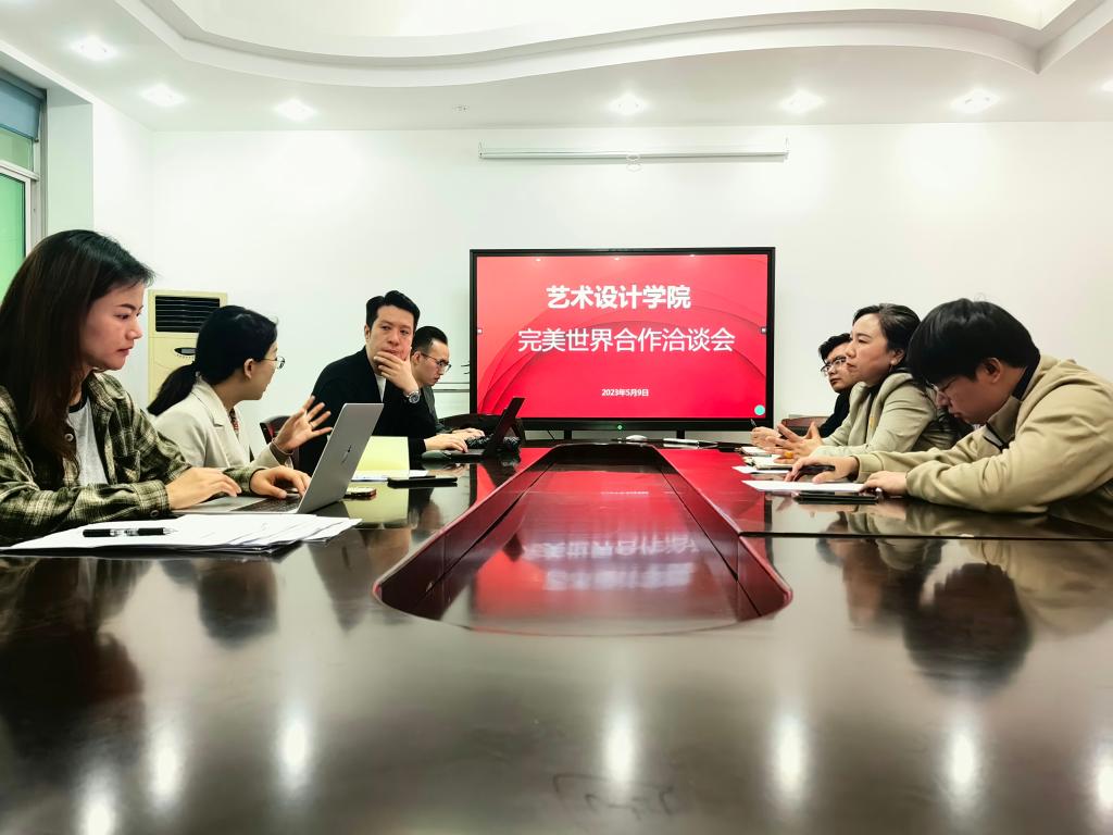 为创新校企合作办学机制、实现产教深度融合,2023年5月9日上午,我校与完美世界教育(北京)有限公司在温故楼210会议室召开洽谈会。对外交流合作处、艺术设计学院相关负责人参加会议。