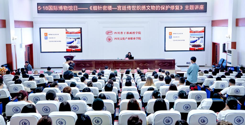 当天启动的“5.18国际博物馆日暨职业教育周——文博青年的成长实践”主题活动,分为八个部分。包括文物修复与保护专业教学成果展、四川文化产业职业学院客座教授聘请仪式、校企合作授牌仪式、捐赠证书颁发仪式、成都市天府新区明昌博物馆文博专业人才奖助学金颁发仪式、故宫博物院文物保护标准化研究所副所长、研究馆员陈杨“细针密缕—宫廷传世织绣文物的保护修复”主题讲座,第十二届博雅(模拟)拍卖会教学活动等,活动让更多人感受到传统文化的力量和文博学院深耕文博专业15载的成果。