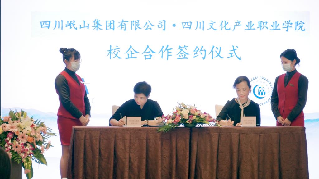 为扎实推进教育部、教育厅“高校书记校长访企拓岗促就业专项行动”要求,进一步深化校企合作,促进毕业生高质量充分就业。5月18日,学校与四川岷山集团公司举行校企战略合作签字仪式。校党委书记代光举,校党委委员、副院长黄萍,四川岷山集团公司副总经理、四川岷山饭店总经理高春玲,副总经理南丹,集团人力资源总监刘震宇等出席签约仪式。学校相关职能部门负责人及实习学生代表参加本次活动。