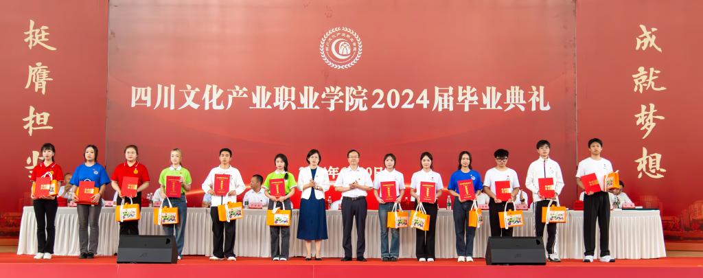 学校党委书记何迎晓,党委副书记、院长罗晓东为获得四川省优秀大学毕业生、学校优秀大学毕业生荣誉称号的毕业生代表颁发荣誉证书。全体校领导为毕业生代表颁发毕业证书。校领导们与各学院毕业生代表一一握手致意、亲切交谈,对同学们顺利毕业表示热烈祝贺,并希望通过他们将学校党委和广大教职员工对2024届全体毕业生的殷切期望和美好祝愿传递给每一位毕业生。