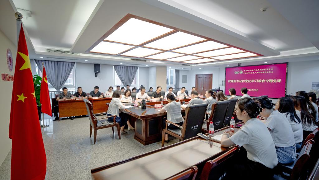 根据党纪学习教育工作部署安排,6月20日下午,校党委书记何迎晓围绕加强党的纪律建设作党纪学习教育专题党课报告。学校纪委委员,党纪学习教育专班成员以及党政办、组织人事部、纪委办全体党员同志参加学习。