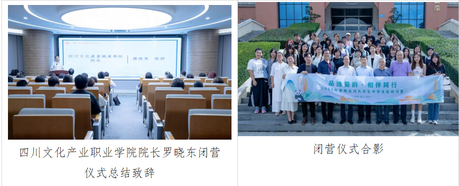 7月10日—7月16日,由来自世新大学等5所台湾地区院校24名师生组成的“品逸蜀韵·相伴同行”2024年暑期台湾大学生中华文化研习营在川成功举办。本次研习营由海峡两岸关系协会主办,四川文化产业职业学院、眉山市台办、雅安市台办承办,四川工商学院协办。