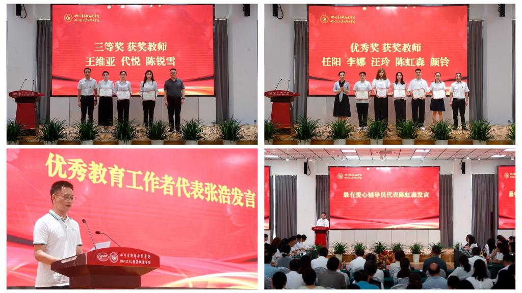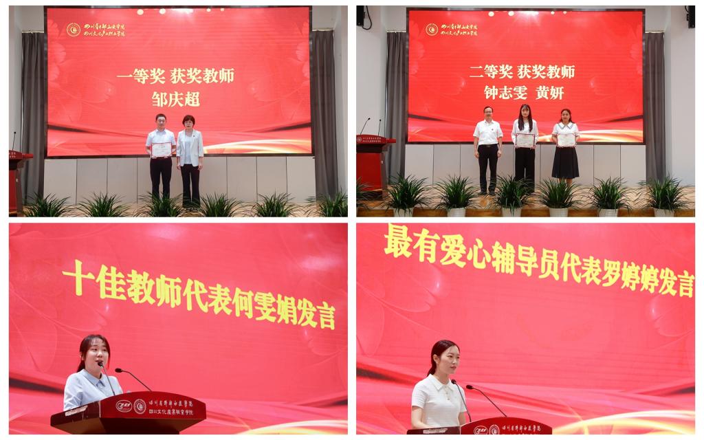 全体校领导为“80、90”青年教师育人故事征文比赛的获奖教师颁发荣誉证书。学生代表为教师敬献贺词,获奖教师代表朗诵育人故事征文,十佳教师代表、最有爱心辅导员代表、优秀教育工作者代表、退休教职工代表作交流发言。
