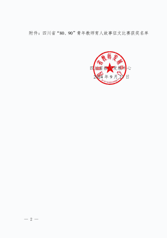 根据《四川省教育厅关于举办“80、90”青年教师育人故事征文比赛活动的通知》文件精神,我校于5月11日—5月31日在全校范围内积极开展征文活动。经过前期筛选,将推荐征文按照文件要求按照典型案例、实践经验、研究报告、教育故事四种文章类别统一汇总上报。
