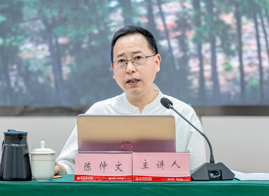 4月18日,我校第六期四川历史名人“文星讲堂”在图书馆四楼开讲。此次讲座特邀眉山市文学艺术界联合会党组书记、眉山三苏祠博物馆(眉山三苏文化研究院)馆长(院长)陈仲文担任主讲嘉宾,以“苏轼:让廉洁成为一种生活”为主题讲述苏轼廉洁之道,全校300余名师生到场聆听。