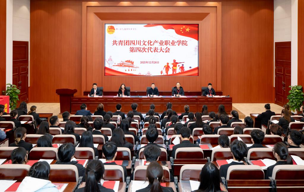 12月26日下午,共青团四川文化产业职业学院第四次代表大会在学术报告厅胜利召开。大会回顾总结了共青团四川文化产业职业学院第三次代表大会召开以来学校共青团工作,科学谋划下一阶段我校共青团的建设和改革发展的工作思路、奋斗目标和重点举措,选举产生了新一届委员会。校党委书记何迎晓、党委副书记、纪委书记李清勇出席会议。