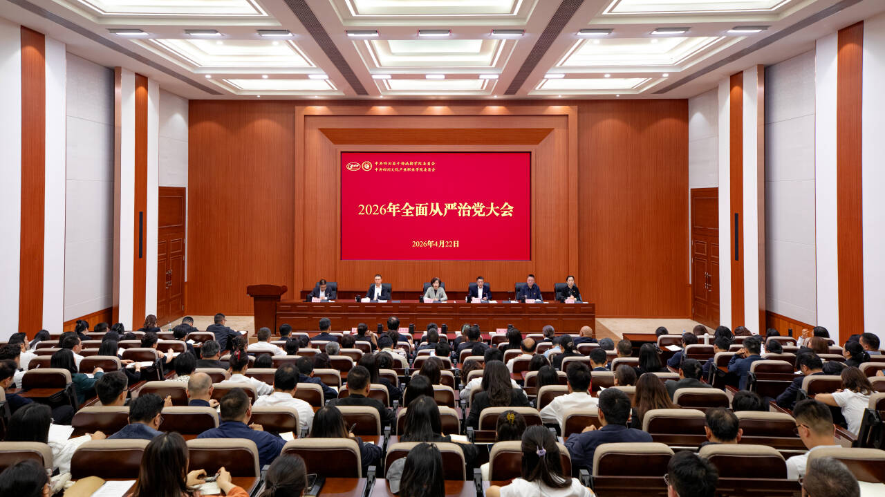 4月22日,我校召开2026年全面从严治党工作大会。校党委书记何迎晓出席会议并讲话,校党委副书记、院长李中锋主持会议,省纪委监委驻省委宣传部纪检监察组段礼同志到会指导并讲话。
