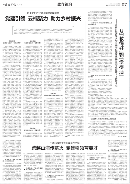 在乡村振兴的壮阔征程中,职业教育成为推动乡村振兴的重要力量。四川文化产业职业学院省级高水平专业群——融媒学院新闻采编与制作专业群充分发挥党组织的政治核心与统筹引领作用,协调校地资源、凝聚师生力量,既确保专业群助农兴农服务始终锚定乡村发展需求,又高效整合教学、技术、人才资源形成“技术+教育+产业”协同助农兴村的“职教方案”,为乡村振兴注入新活力,托起大民生希望。