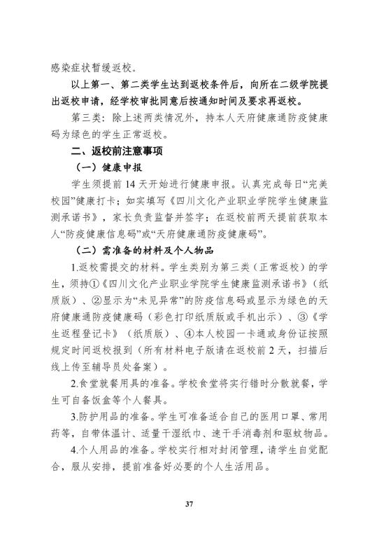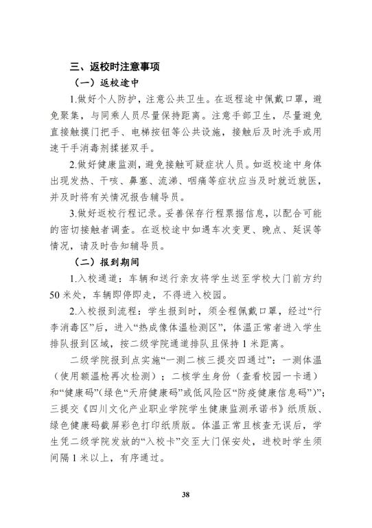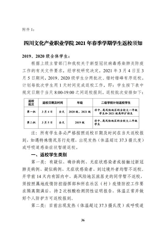 四川文化产业职业学院 2021年春季学期学生返校须知