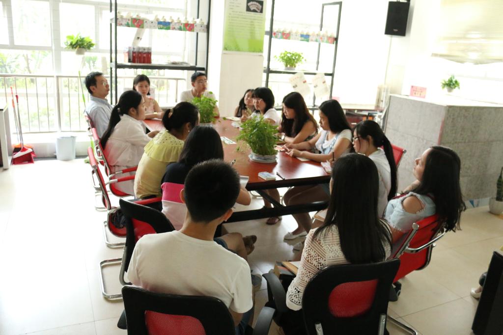 交流会上,邓颖颖首先对《文商时讯》编辑部主创成员共同参与制作的“‘春蕾行动’文创助学基金”项目策划方案进行了详细点评,她希望同学们能够视此次参与策划的过程为宝贵的学习实践,拓展思维,尝试走出传统帮扶的模式,探索创意帮扶的新路径,将更多的文化创意融入到爱心公益事业之中。随后,学生代表李月萍就5月11日《文商时讯》编辑部前往乐山市沐川县永福学校开展的为留守儿童爱心送书活动进行了总结,与会同学们充分交流了此行的所感所悟。