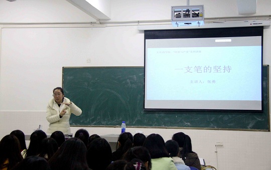 12月3日,我院邀请热播剧《伪装者》原著小说作者兼编剧张勇做客“创意与产业”系列讲座,以“一支笔的坚持”为主题,就剧本创作与同学们展开亲切交流。