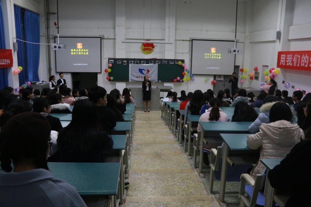 2016年11月24日晚,援西志愿者协会在第二教学楼104举办了以“公益在线,爱心无限”为主题的十周年庆典晚会。文化商学院分团委书记、学生科科长吴燕霞,校社联、校青协、院社管委、院青协以及学院各大社团代表参加了本次活动。
