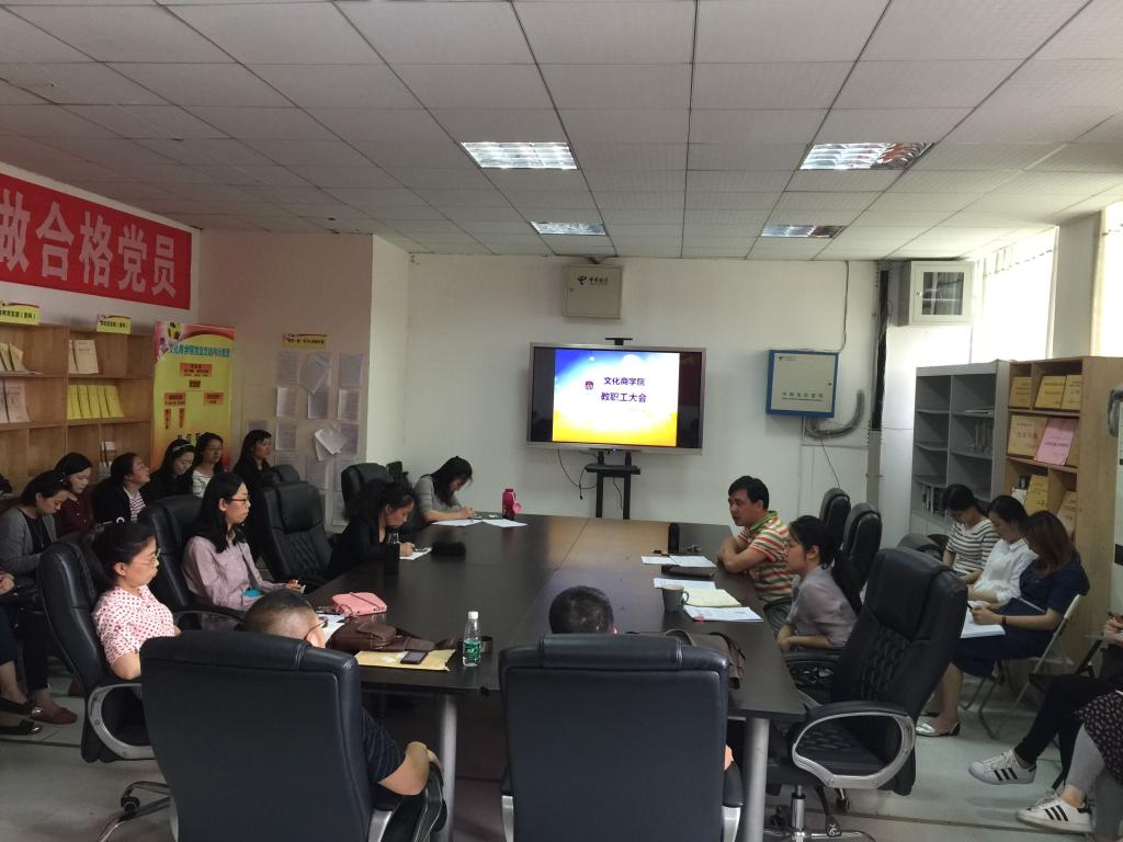 5月4日,文化商学院期中教职工大会在第二教学楼四楼会议室召开,学院全体教职工参加了会议。会议由院党总支书记、院长宋晓主持。