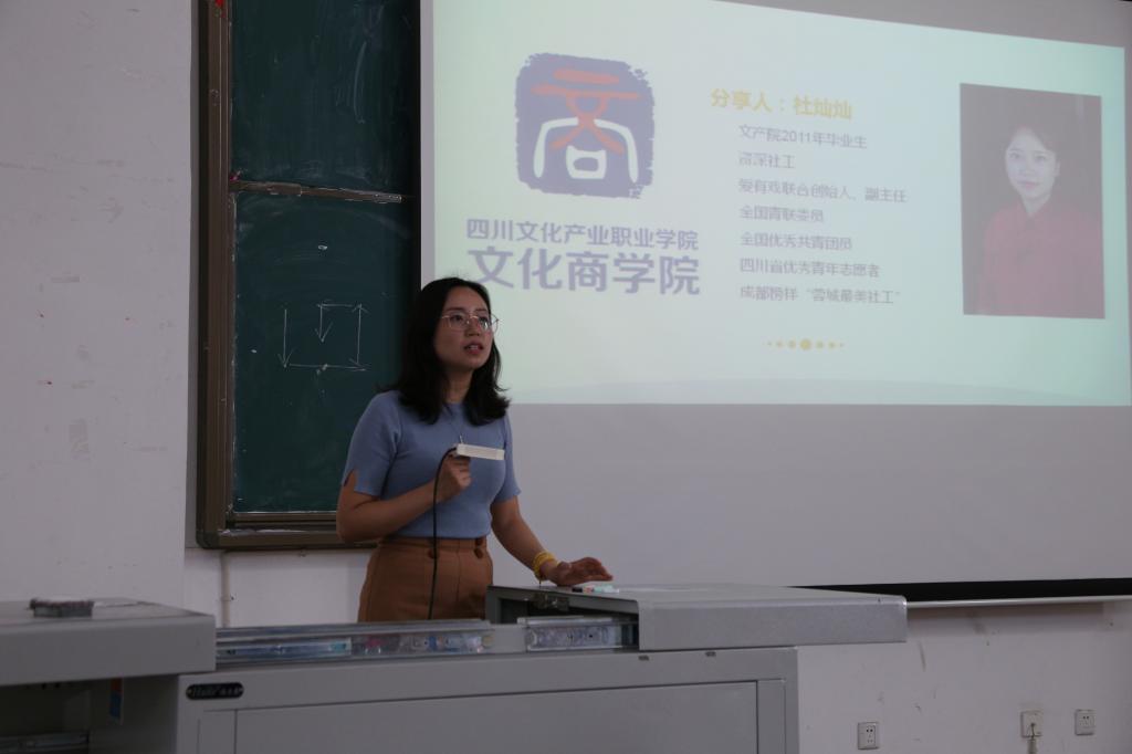 为何文商学院“丝路讲坛”会连续两次邀请杜灿灿校友进行工作经历分享?“我们希望通过杜灿灿以学姐身份进行的分享,在传播正能量同时,让同学们知道,未来的就业方向其实有很多可能,比如以助人自助为理念的社会工作就是很好的选择。”公管专业负责人李娟如是说。