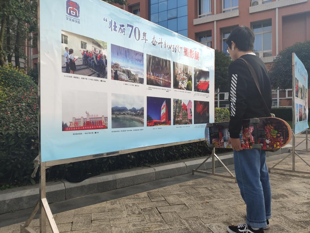 为深入学习领会党的十九大会议精神,用习近平新时代中国特色社会主义思想铸魂育人,培养和塑造新时代青年的品德、志向,文化商学院于11月4日至6日举办了“壮丽70年,奋斗新时代”主题摄影展。