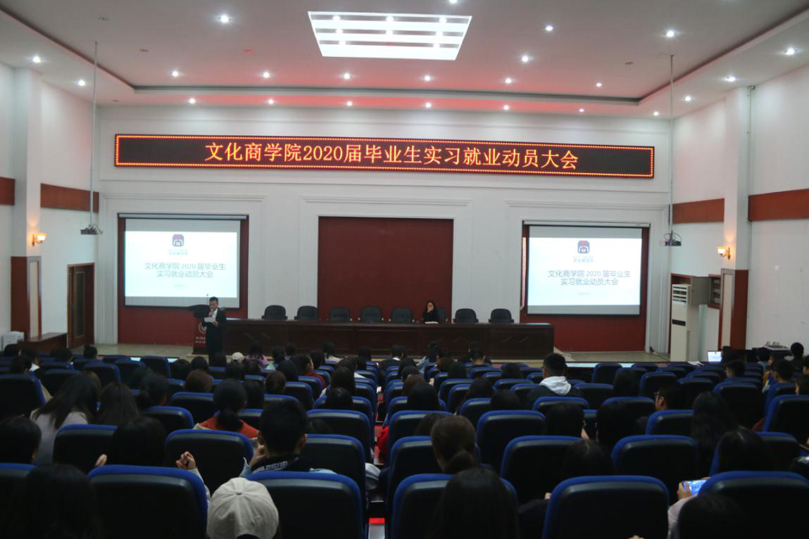 为帮助2020届毕业生了解今年实习就业工作的相关流程和注意事项,顺利完成顶岗实习任务,实现优质就业,11月7日下午,文化商学院在二教105举行了2020届毕业生实习就业动员大会。学院副院长邓颖颖、就业指导老师杨萌、实习指导老师郭晓霞及全体大三辅导员老师、17级应届毕业生代表参加本次动员大会。