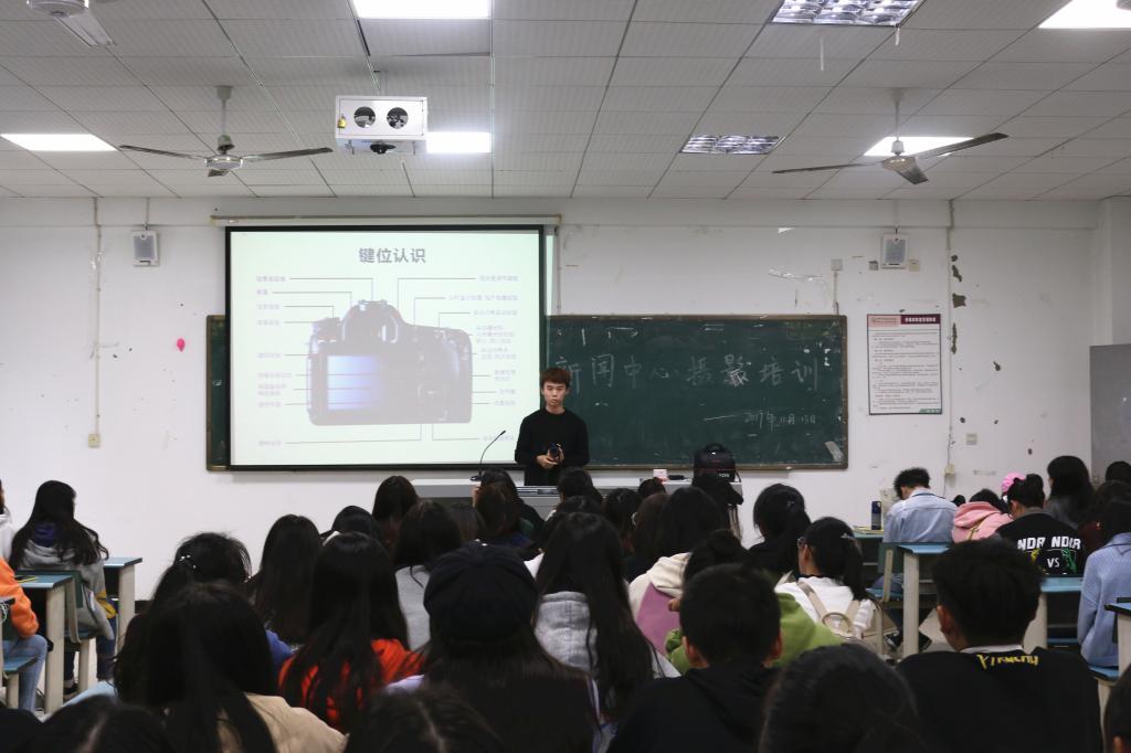 围绕新时代宣传工作任务,结合“不忘初心,牢记使命”主题教育,同时为了丰富我院大学生第二课堂文化,增强同学们的摄影构图能力,提高新闻稿件质量,11月13日中午,文化商学院在第二教学楼108教室举办了新闻摄影培训及经验交流会,我院新闻中心摄制部刘晗分享了自己的拍摄心得。我院团学组织以及摄影爱好者参与了本次培训。