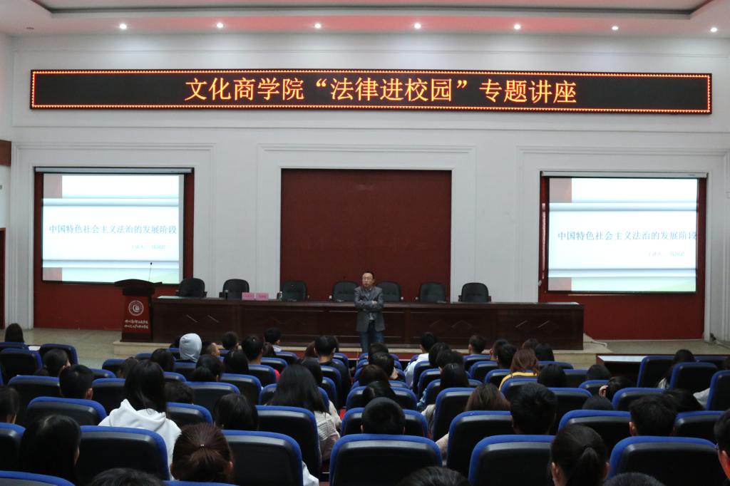 为普及在校大学生的法律常识,提高学生金融安全防范意识,创建安全和谐校园,文化商学院于11月13日上午在二教105教室举办“法律进校园”专题讲座。讲座邀请了四川中小学教师师德研究中心理论部主任、律师钱国君担任主讲人,我院18级、19级学生代表到场参加。