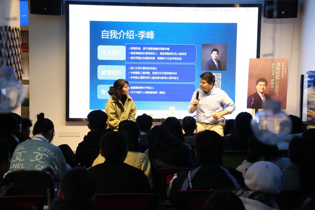11月28日晚,文商学院“丝路讲坛”邀请明亚保险经纪公司保险经纪李峰先生担任“遇见未来的自己”职业访谈沙龙第十场的主讲嘉宾,与同学们分享有关保险经纪人的职业故事。