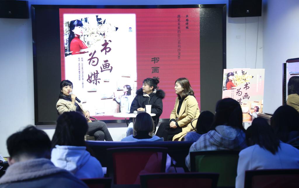 在这场名为“书画为媒”的沙龙活动中,首先由赵文溱馆长向同学们介绍了诗婢家这家创立于1920年的百年文化老店的基本情况,接着郑佳经理与赵文溱馆长结合自己的从业经历,从展览与拍卖两个维度介绍了四川书画行业的现状与趋势。她们认为,书画行业这几年因受各方面因素影响确实不如前些年景气,但随着国家提出“文化强国”与“文化自信”战略,对书画行业多有扶持,使得书画行业进入了一个转型升级、创新发展的新阶段。随后,在就业与择业问题上,郑佳经理认为当代大学生专业与就业不对口是常态,并分享了自己英语专业毕业后、从导游进入到书画拍卖的职业经历,认为专业固然重要,但热爱与坚持才可以使人有所成就。而赵文溱在回答主持人提出的“从事书画业需要什么知识技能”这一问题时,则主张相对于专业技能,诚信才是能在书画业安身立命之本。