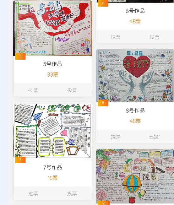 本次比赛的选手通过手抄文字和手绘插图制作,发挥参赛选手的创意能力和动手能力。比赛历时10天,共收到全校363份学生作品。经过多层筛选和研究讨论,20份具有代表性的作品脱颖而出进入投票环节,最终谢珂、柏顺励、范虹英等10名选手的作品票数高居前十。