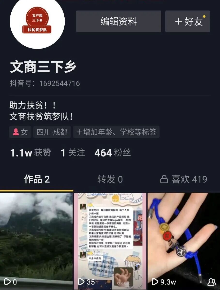 此次“三下乡”活动采用“互联网+社会实践”的模式。前期,指导老师和领队与理县蒲溪村第一书记尹亮、王倩俐,村干部周凤兵进行多次交流,了解当地村民及贫困户生产生活情况,深入了解和学习扶贫政策,研究《农户家庭基本信息》和《两不愁、三保障》情况调查表,成立了拍摄组、剪辑组、销售组和直播组。中期,团队成员搜集相关资料,听取群众对直播带货的意见和建议,制作农产品海报和调查问卷,根据问卷内容撰写调研报告。通过微信、QQ、公众号、抖音、淘宝等多媒体进行广泛宣传,提升活动影响力,为直播助销做铺垫。后期,团队制作创意短视频,发布于抖音短视频平台进行吸粉,在拥有一定的粉丝后,团队开始抖音直播带货。截至8月28日已发布视频20个,其中带货视频最高播放量为4.7w,带货视频最高点赞量为3.5w,视频号粉丝量累计为746人。