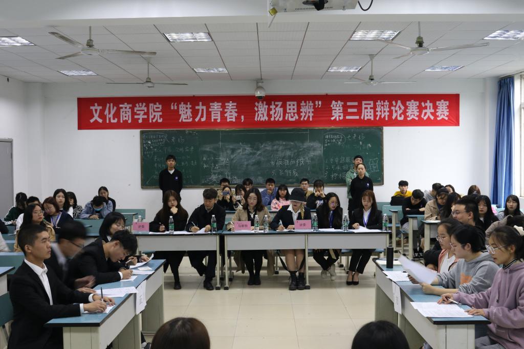 为进一步贯彻落实全国学生联合会第二十七次代表大会精神,引导大学生树立正确三观,培养发掘思辨人才,提高学生团队协作能力,11月4日文化商学院在二教201组织开展“魅力青春 激扬思辨”辩论赛决赛。参加决赛的三组12位选手经过班级推荐、辩论初赛环节,从初赛60位选手中脱颖而出进入学院决赛。