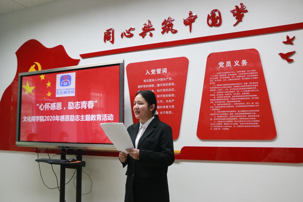 为进一步加强学院学风建设和资助育人成效,激励广大学生奋发自强、立志成才、感恩诚信、攻坚克难,文化商学院于2020年12月31日开展了“心怀感恩、励志青春”感恩励志主题教育活动。学院党总支副书记王维姝、全体辅导员老师及各班级奖助学金获得者参会。由于疫情防控需要,本次活动在温故楼三楼党员活动室和腾讯会议室线上直播同时进行。