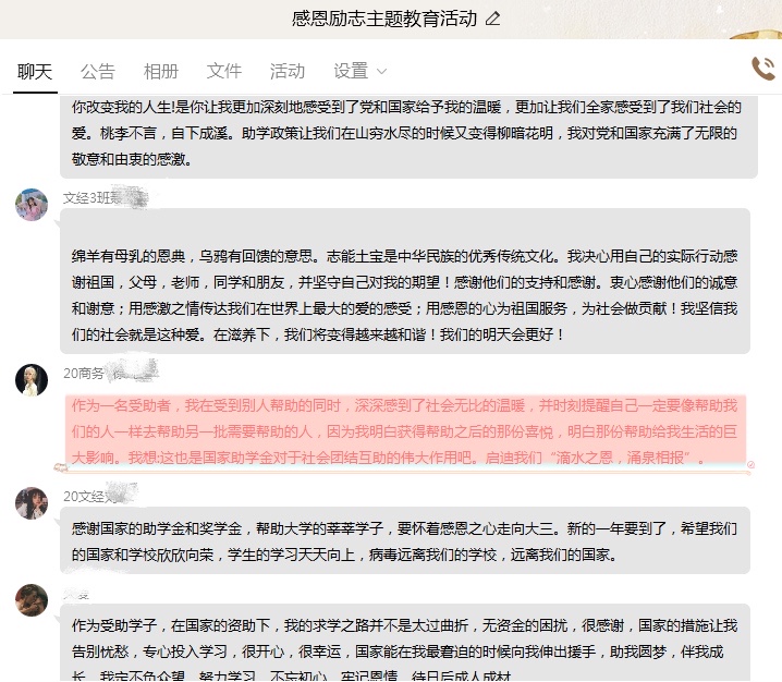通过本次主题教育活动,激发了同学们感恩之情和进取之心,引导他们用汗水浇灌明天的希望、用勤奋书写灿烂的大学篇章。