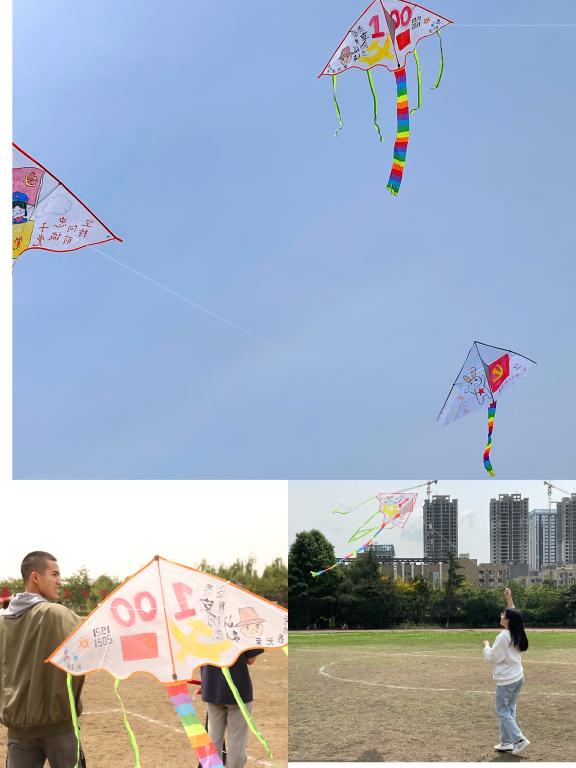放飞活动结束,同学们的喜悦和兴奋久久不能平息。文经专业宋昱林同学感慨说:“此次活动让我们感受到了自我创作的成就,也感受到了团队分工协作的重要性。手绘在风筝上的鲜红党旗寄托了我们对党和国家的热爱之情和美好祝愿,我们放飞的不仅仅是一只小小的风筝,而是寄托了我们团队5位成员的红色梦想。”