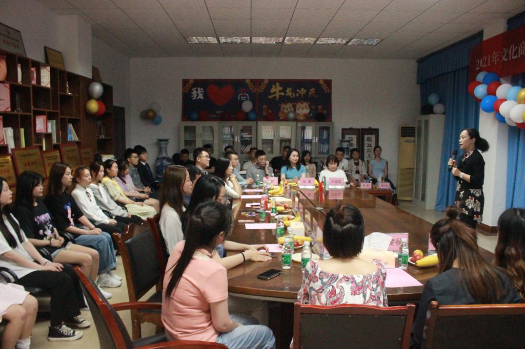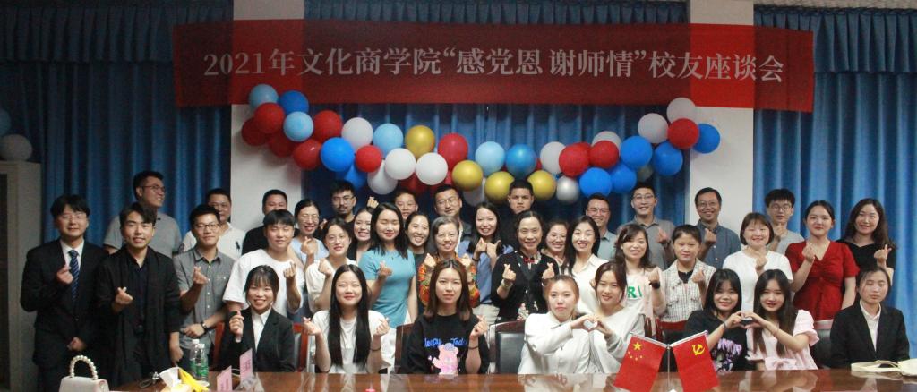 5月28日下午,文化商学院在温故楼三楼会议室举行“感党恩 谢师情”校友座谈会。学院党总支书记、院长黄萍,副书记王维姝和专业负责人、科室负责人等28位师生代表与返校的14位校友代表欢聚一堂,共庆党的百年华诞、共叙美好师生情谊。