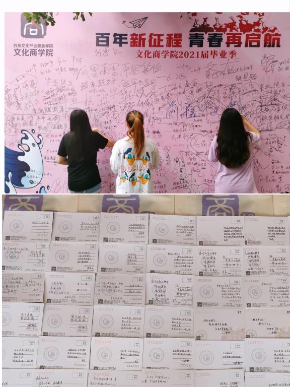 学院2021届毕业生返离校活动在温情、温馨、温暖的氛围中有序开展。同学们纷纷在学院特别制作的毕业主题墙上签名留言,表达对学校对老师的感谢和不舍,表达对未来对前程的美好祝愿。毕业于建党百年之际,同学们带着时代赋予的光荣印记,怀揣喜悦、手持庆祝建党100周年标识牌在签名墙前拍照留念。学院办公区弥漫着的《真夏的樱花》悠扬歌声、大屏幕循环播放的毕业视频、贴心的毕业流程办理须知、学院全体老师为同学们在581张明信片上写下的临别赠言、学院精心为同学们制作的毕业纪念册等,让毕业生们倍生感动。