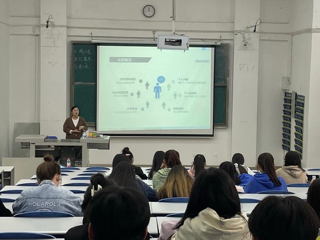 来自四川成都贝壳闹海房地产经纪有限公司资深HR康文蓉围绕面试的准备、面试中的注意事项、面试常见的形式和面试结束的注意事项等四个方面进行了分享。她详细介绍了真实职场的面试情况。告知同学们要认识自己、认识岗位并分享了简历制作技巧。同时她还教会同学们如何获取就业信息渠道,帮助学生掌握第一手就业信息资源,扩大就业渠道。同学们纷纷表示收获满满。