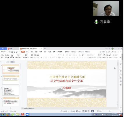 石院长以“历史性成就”、“历史性变革”的提法引入本次主题,从坚持党的全面领导、全面从严治党、经济建设、全面深化改革开放、政治建设、全面依法治国、文化建设、社会建设、生态文明建设、国防和军队建设等十三个方面介绍了中国特色社会主义新时代的历史性成就和历史性变革。