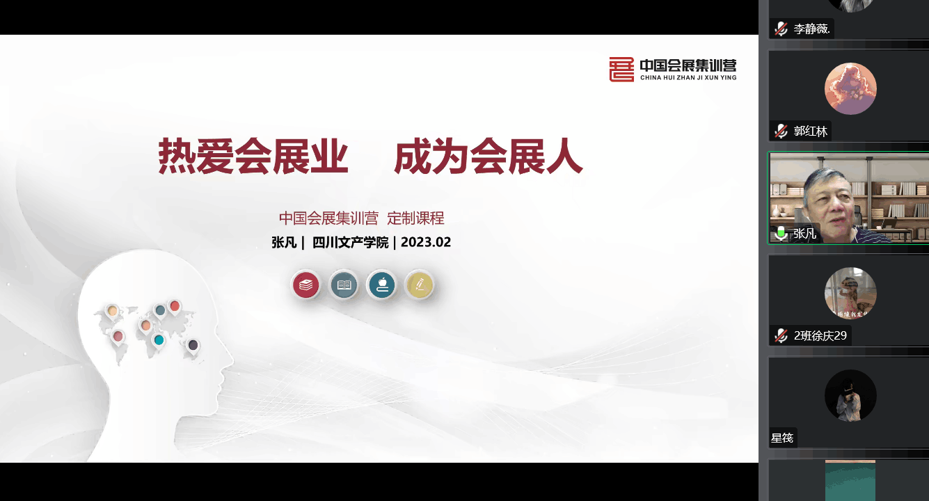为进一步了解产业发展趋势,学习借鉴双高建设先进经验,更好地推进学院发展建设及内部质量诊断与改进工作,2023年2月27日,文化商学院邀请资深会展职业经理人张凡通过腾讯会议为师生开展题为“热爱会展业,成为会展人”的专题讲座。讲座由文化商学院副院长曾兴主持,学院师生约200余人在线聆听了本次讲座。