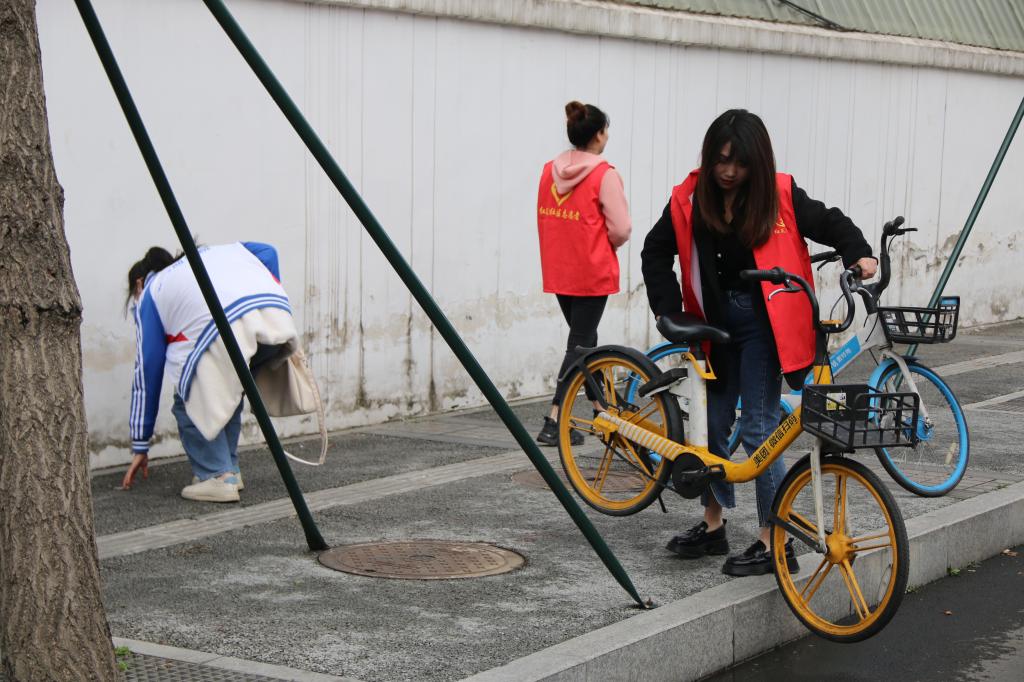 志愿者们在红瓦社区工作人员的带领下迅速投入工作,他们拿着抹布、扫帚、等卫生工具,对辖区宣传栏、公共地带的卫生死角和小区绿化带等区域进行清理,并将街道上乱摆乱放的共享单车进行了整理。经过半天的志愿服务工作,红瓦社区的小区环境变得干净、整洁。看到大学生们在社区忙碌的身影,路过的居民们纷纷竖起大拇指。
