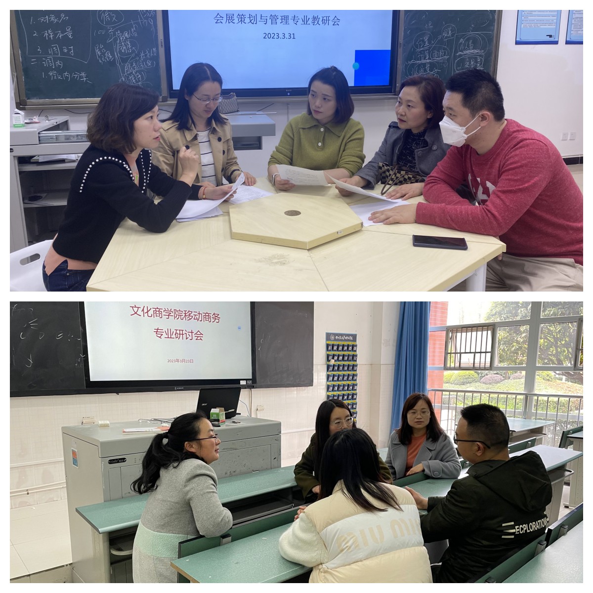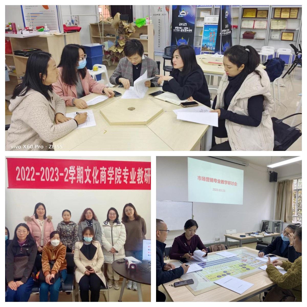 为加强新商科专业内涵建设,推动各专业转型升级,立足数字化新局势,找准各专业定位,文化商学院于3月24日-3月31日,组织开展各专业教学研讨会,文化商学院副院长曾兴、各专业主任及全体教师参加研讨。
