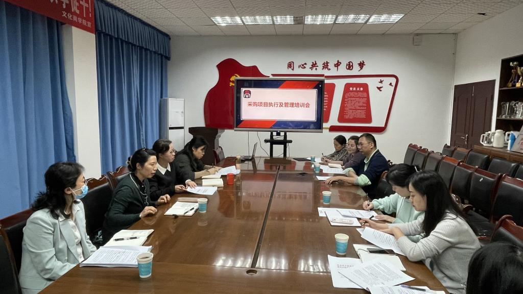 为进一步规范学院采购管理工作,提高采购效能,4月25日下午,文化商学院在学校温故楼三楼会议室召开采购项目执行及管理培训会,特邀资产管理处处长吴斌、副处长全威莅临指导。文化商学院党总支书记王维姝、副院长曾兴和采购工作相关人员参加了此次培训会。