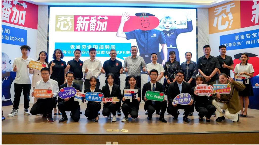 2023年5月19日,由四川金拱门食品有限公司主办的麦当劳全国招聘周“职等你来”四川市场首场面试PK赛决赛在西华大学郫都校区学术交流中心举行。为强化深度校企交流,促进校企资源共享,助推新型专业人才培养,让学生核心素养、就业技能落地落实,文化商学院积极组织学生参与比赛,2022级会展策划与管理专业学生甲差拉曲进入决赛并斩获优秀奖。