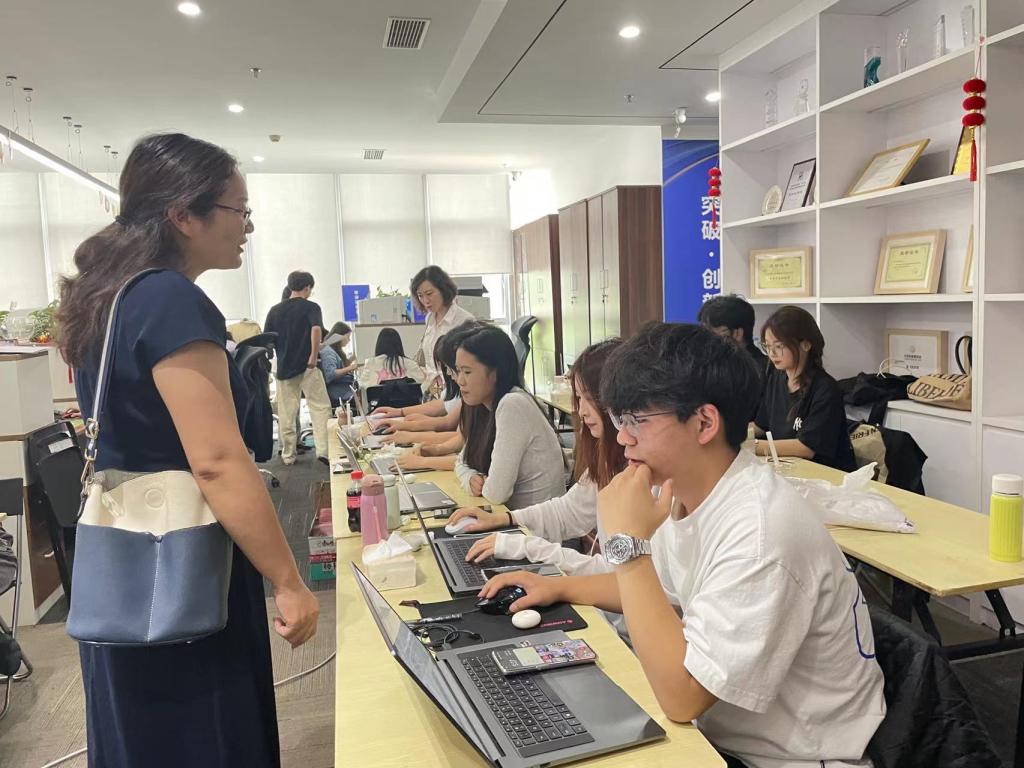 现场,吴燕霞一行还看望了正在实践岗位上的志愿者同学们,代表学院表达了亲切问候和美好祝愿,与企业方展开校企洽谈,就进一步走深走实项目合作、产教融合达成共识。
