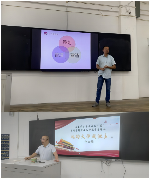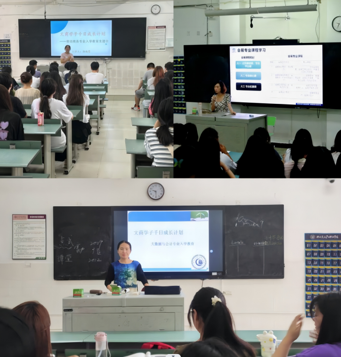 文化产业经营与管理专业从期望、应援和期许三个方面介绍了培养目标、课程体系,市场营销专业以“我的大学我做主”为主题,将专业信息以分享会形式进行推介,大数据会计专业通过回顾会计行业发展历程,引入就业岗位、职业证书、课程设置等相关内容,会展专业从会展行业认知、课程板块设置、会展专业特色优势及课外拓展等方面进行讲解,提出“找准定位、主动学习、蜕变成长”三点要求,移动商务专业重点介绍了移动商务行业认知、发展前景、学科发展的现状,并从专业人才培养目标、课程设置,专业就业方向与前景四个方面让同学们充分认识所学专业。