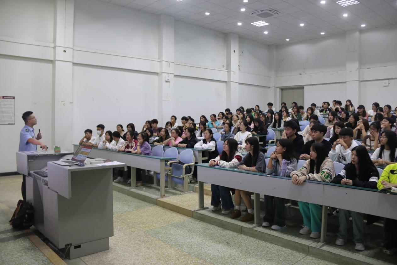 讲座中,王教官介绍了火灾对人身安全和财产的巨大危害,详细讲述了火灾常见的起因,提醒同学们要注意火灾预防。通过案例,向同学们讲解了火灾应急处理的具体步骤和方法,介绍了校园内各类消防设施的作用和使用方法。