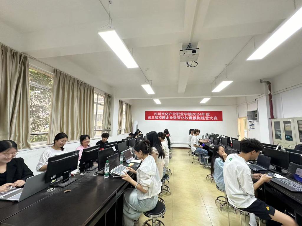 该赛事为我校2024年度校园职业能力系列竞赛活动之一,文化商学院在去年获得该赛项省赛赛区第1名的优异成绩后,继续积极组织备赛工作,深度推动以赛促教、以赛促学,对标相关省赛、国赛规则,以团队赛的形式,组建竞赛社团,利用企业数智化沙盘模拟企业经营,使得同学们对数字经济时代背景下的企业经营决策有更加具象化的认知,并通过“仿真性”的模拟经营,提升同学们的管理能力、协作能力和创新能力。