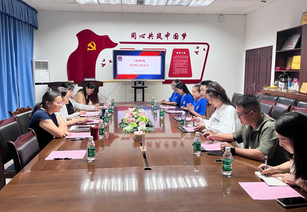 为了更好地凝聚和发挥校友力量,助力我院发展建设,2024年6月20日,文化商学院在温故楼310会议室举行2024年校友座谈会。文化商学院党总支书记王维姝、副院长曾兴、辅导员代表以及校友代表参会。会议由文化商学院总支副书记吴燕霞主持。