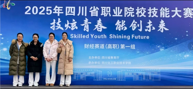 2026年,由四川省教育厅主办的四川省职业院校技能大赛商贸赛道财务与会计类(高职组)比赛在四川化工职业技术学院圆满落幕。由我院教师杨婉莹、杨春霓指导的大数据与会计专业学生刘洁、文彬彬、李羽珍、海来阿子组成的参赛团队,沉着应战、稳定发挥,斩获铜奖,展现了我院财经类人才培养的扎实基础与综合实力。