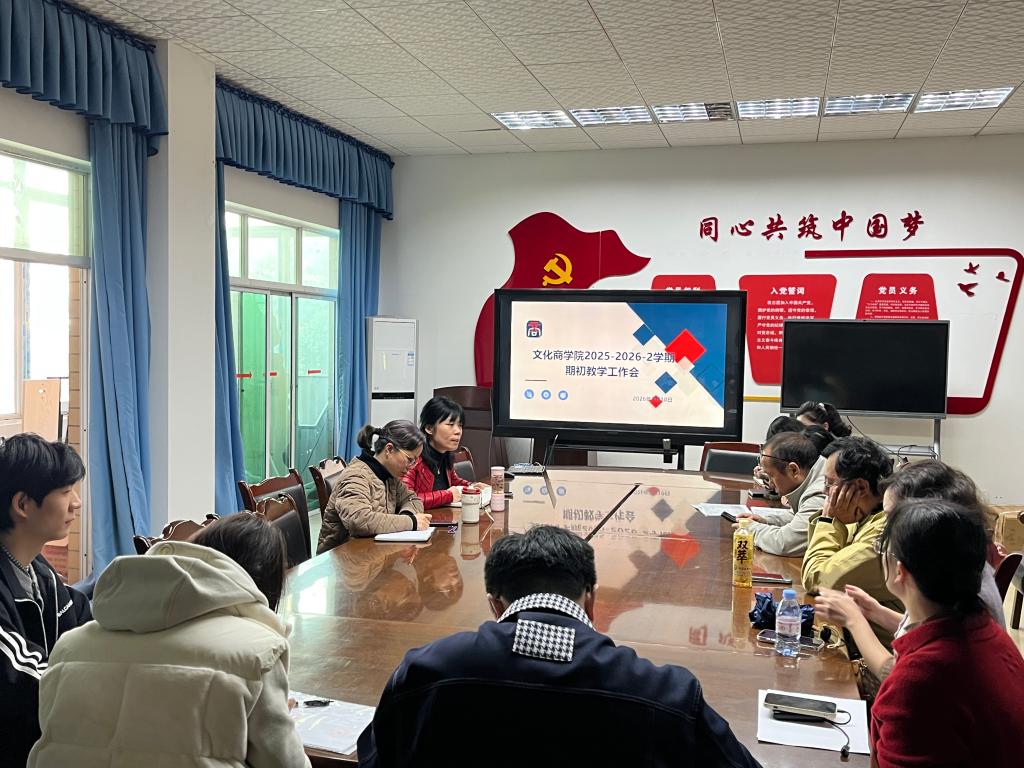 为确保新学期教学工作平稳有序开展,明确阶段工作重点,持续提升学院教学质量与育人水平。3月10日,文化商学院在温故楼三楼会议室组织召开2025-2026-2学期期初教学工作会议。学院党总支书记王维姝、院长曾兴、各专业负责人及教务科全体工作人员参会,会议由曾兴主持。