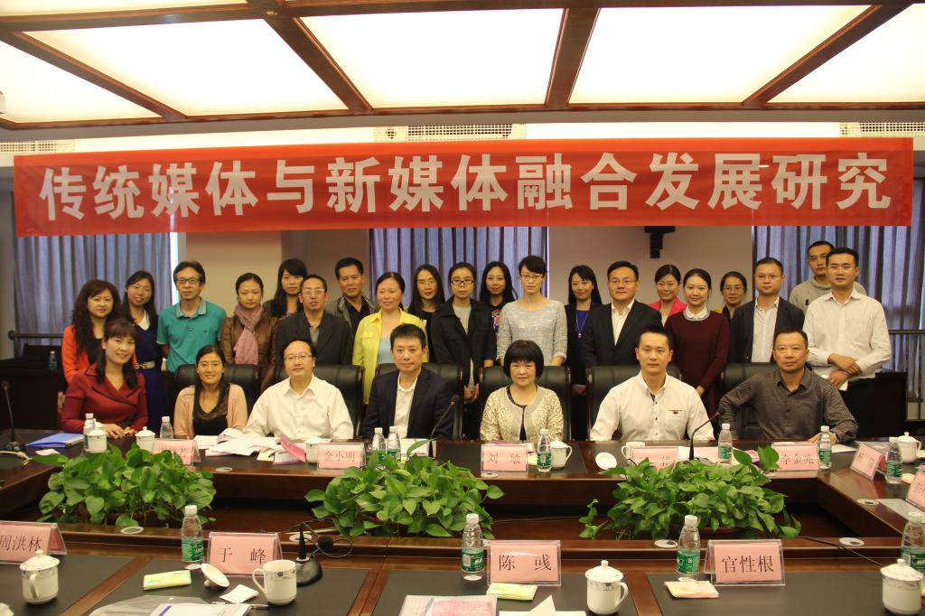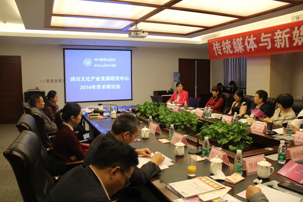 10月25日下午,由文化传播学院承办的四川文化发展研究中心2014年学术研讨会分会场“传统媒体与新媒体合融合发展研究”研讨会在我校新行政楼举行。来自新华社四川分社、成都市社情民意调查中心、四川师范大学、西华大学等的20多位新闻业内外专家汇聚一堂,就传统媒体与新媒体融合发展的现状、趋势、对策等问题进行了深入探讨。研讨会由四川师范大学文学与新闻传播学院院长刘敏主持。我校领导罗晓东、曹启富出席本次研讨会。