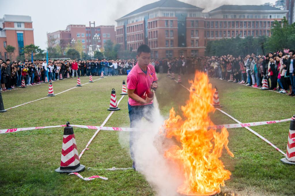 此次消防运动会设有水带运送接力、火场营救、火场逃生、50米冲刺灭火、灭火自救、20米运水赛6个项目。在50米冲刺灭火赛中,我院郭琴、唐玉、侯颖、陈军同学在小组比赛中均夺得第一名的好成绩。比赛高潮出现在20米运水赛中,我院郭秋茹同学凭借稳定的发挥夺得该项目女子第一。运动健儿们出色的表现展示了文传学院斗志昂扬的精神面貌。
